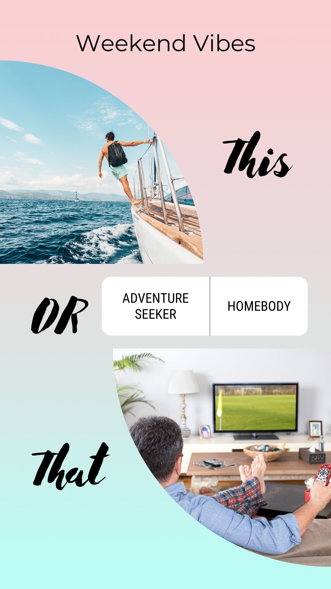 Text on the sticker: “”Adventure seeker”” or “”Homebody””.