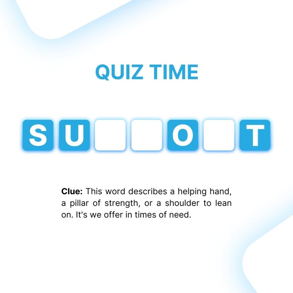 🔍 Word Quiz Time. Can you guess the word that describes a helping hand, a pillar of strength, or a shoulder to lean on? 🤔 Put your thinking caps on and comment your answer below. 👇