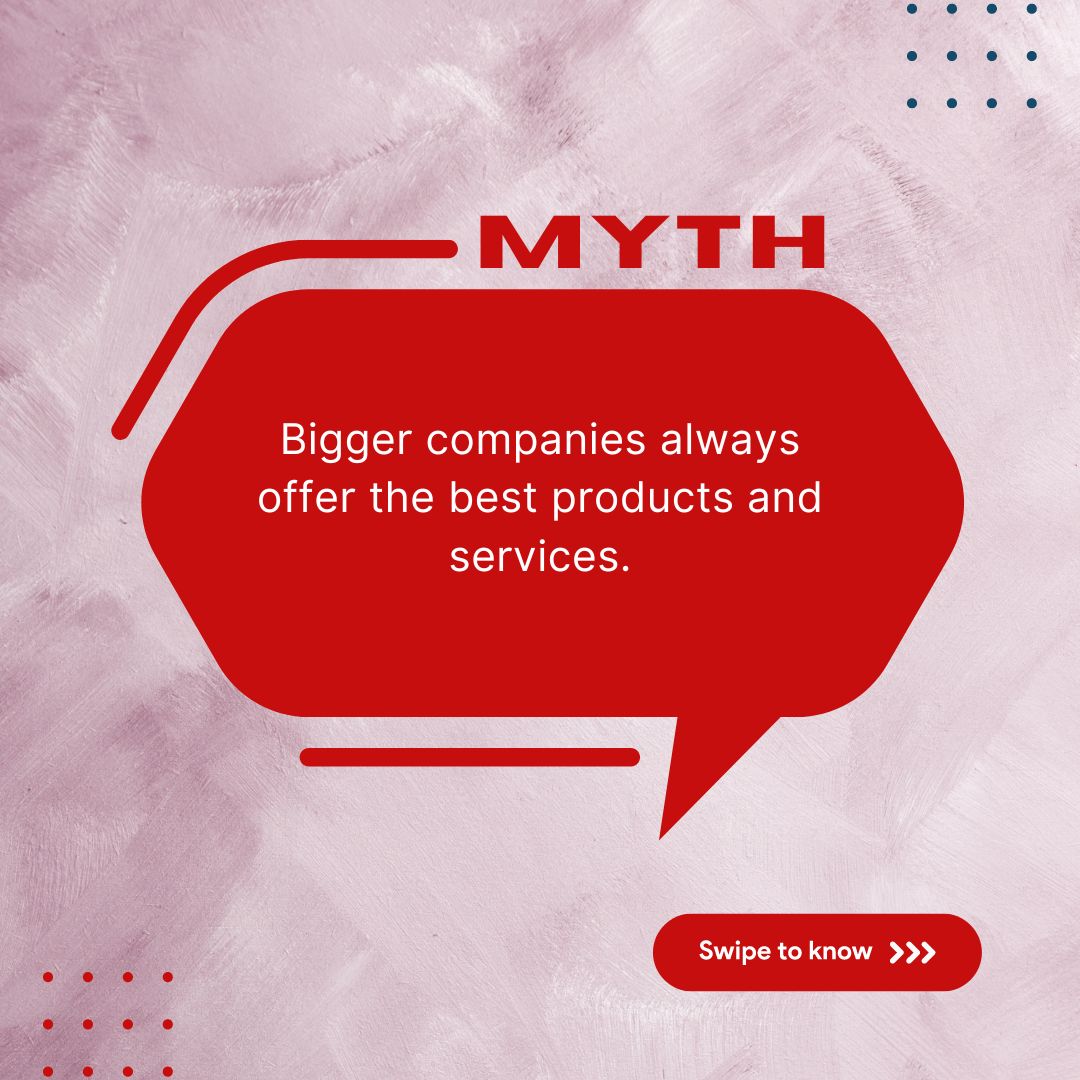 Swipe through our latest carousel where we tackle a common myth: ‘Bigger Companies Always Offer Better Products and Services.’ Let’s explore why this isn’t always the case and why smaller businesses might just surprise you with their quality and innovation.